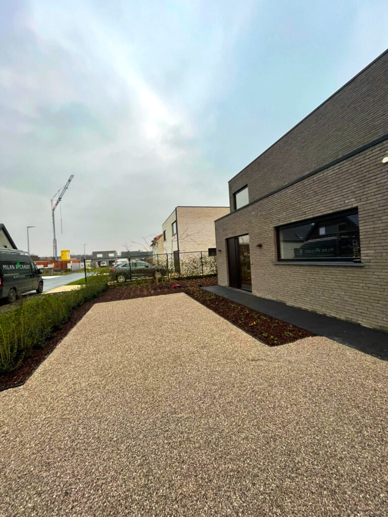In Maria-Aalter werkten we een tuin uit die aansluit bij de hedendaagse architectuur van de woning en de open omgeving errond. De vraag was om een strakke, rustige buitenruimte te creëren die zowel praktisch als esthetisch in balans blijft.