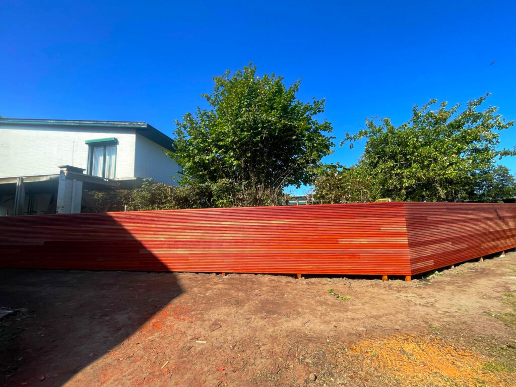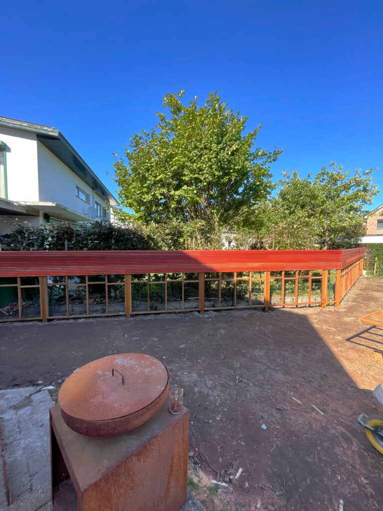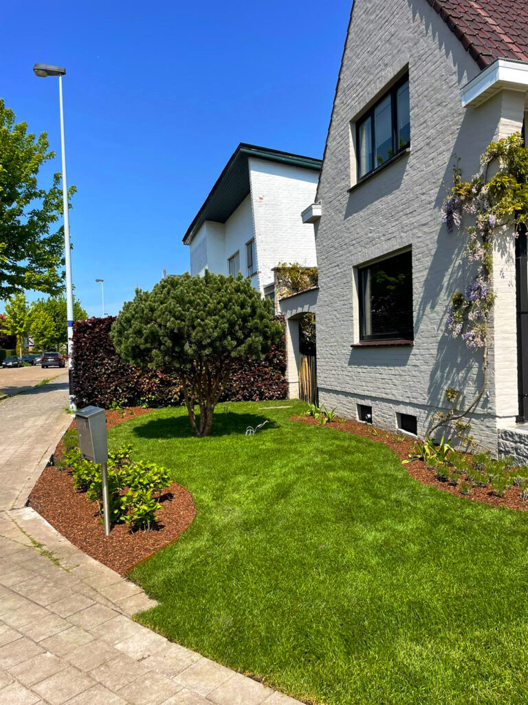 We stonden in voor de verharding, beplanting, aanleg van nieuwe grasmatten, omheining en beregeningsinstallaties.